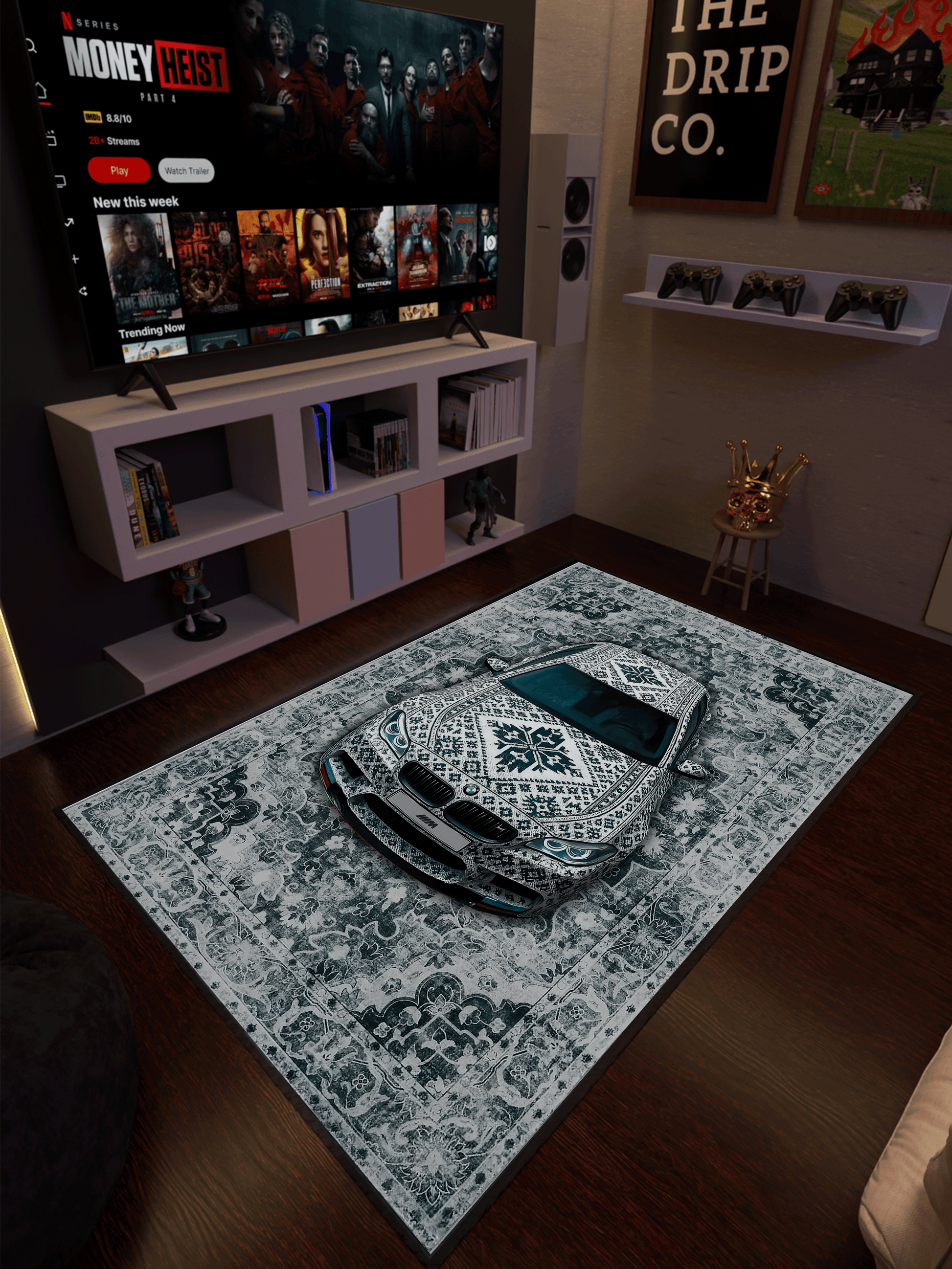 Gerçek araç tasarımlarından ilham alan detaylarıyla, videoda gördüğünüz otomobil ile halı arasındaki kusursuz uyum fikrini yansıtır.